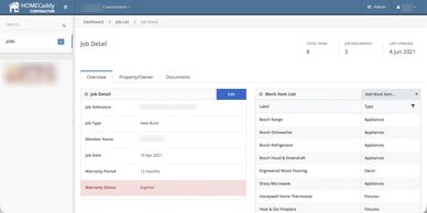 HomeCaddy will manage all Job related details, along with client and warranty information.